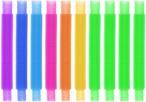 Šis 10 sensorisko trubiņu komplekts ir izstrādāts, lai sniegtu taustes un dzirdes stimulāciju. Trubiņas, pieejamas 7 dažādās krāsās – dzeltenā, rozā, violetā, oranžā, zilā, tumši zilā un zaļā, ir ideālas izglītojošām spēlēm, piemēram, burtu apgūšanai, skaitīšanai u.c. To savienojamība ļauj veidot dažādas formas, piemēram, apļus un kvadrātus, kas veicina bērnu radošumu un nodrošina stundām ilgu izklaidi. Pieaugušajiem tās kalpo kā lielisks rīks stresa mazināšanai.