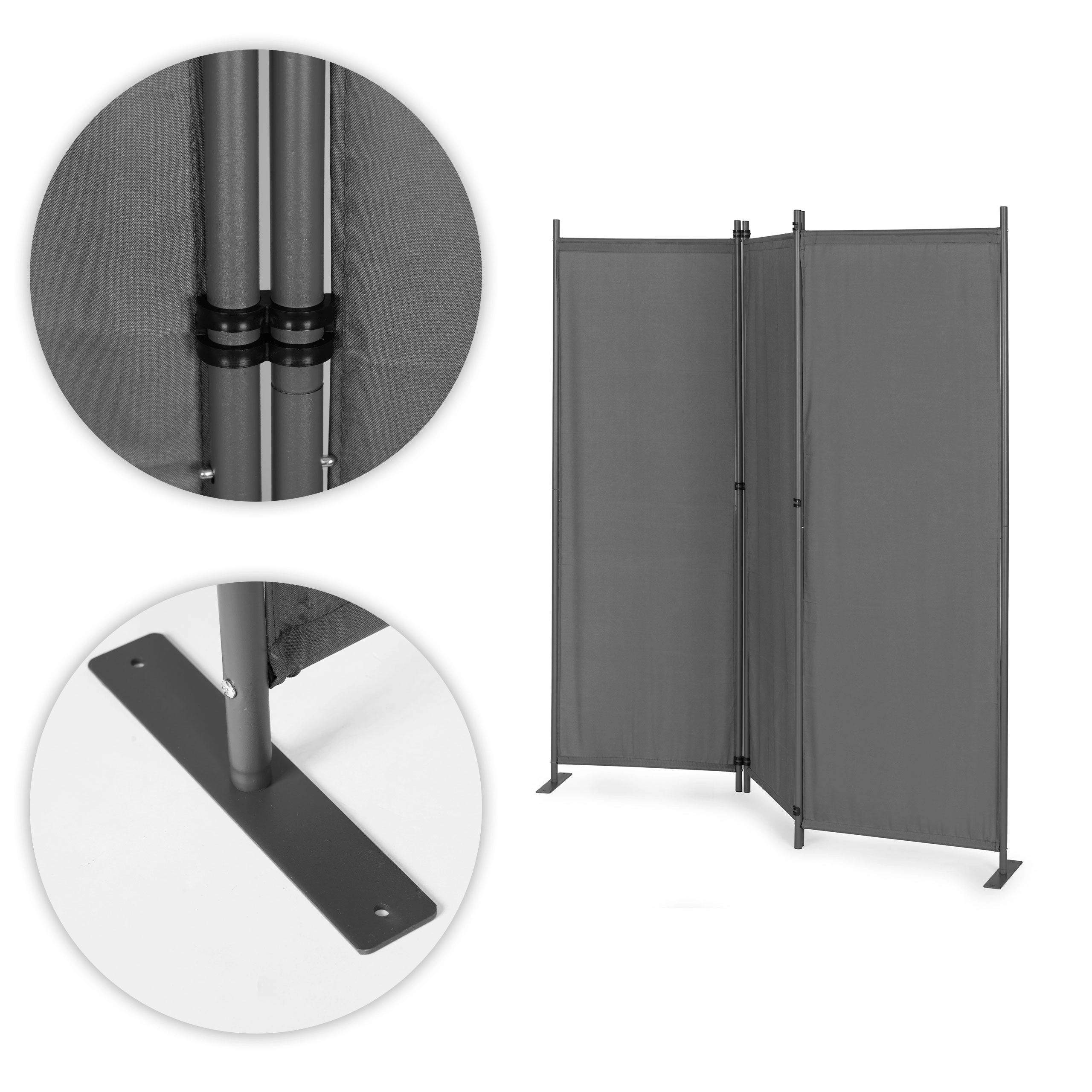 Stingrie paneļu savienotāji nodrošina vienmērīgu salocīšanu un atlocīšanu, atvieglojot ikdienas lietošanu. Stabilā metāla pamatne ir aprīkota ar praktiskām montāžas atverēm piestiprināšanai pie zemes, tādējādi palielinot stabilitāti un novēršot apgāšanos pat uz nelīdzenas virsmas.