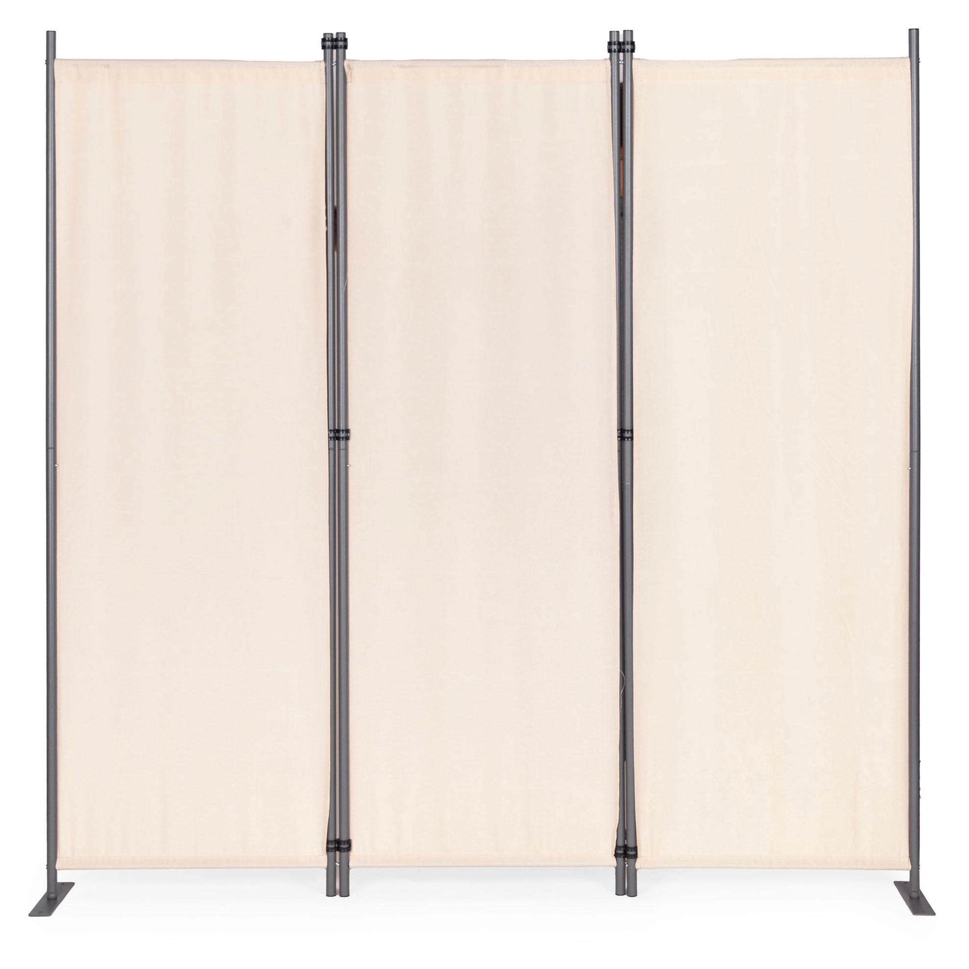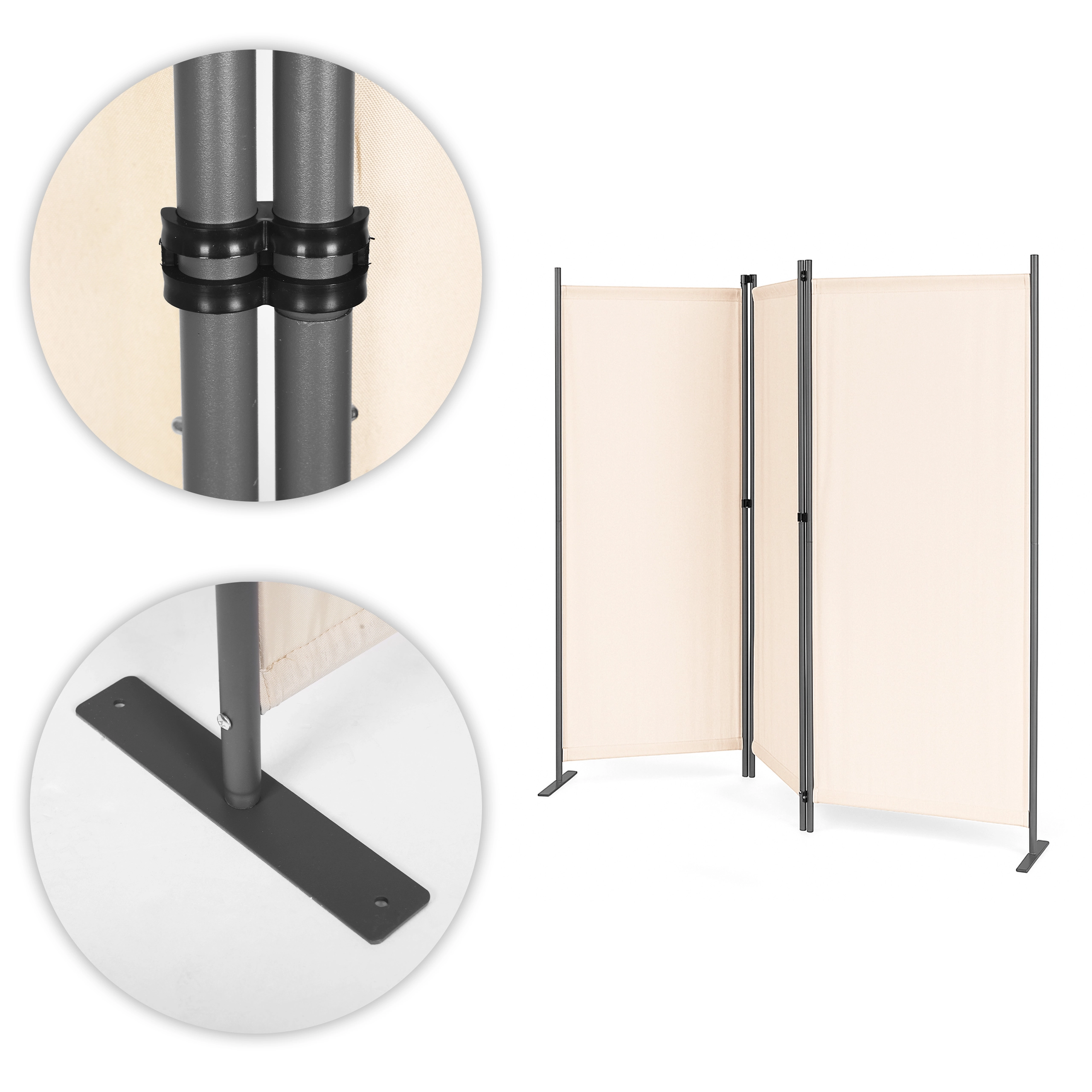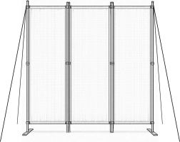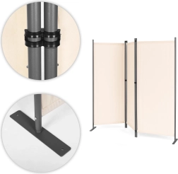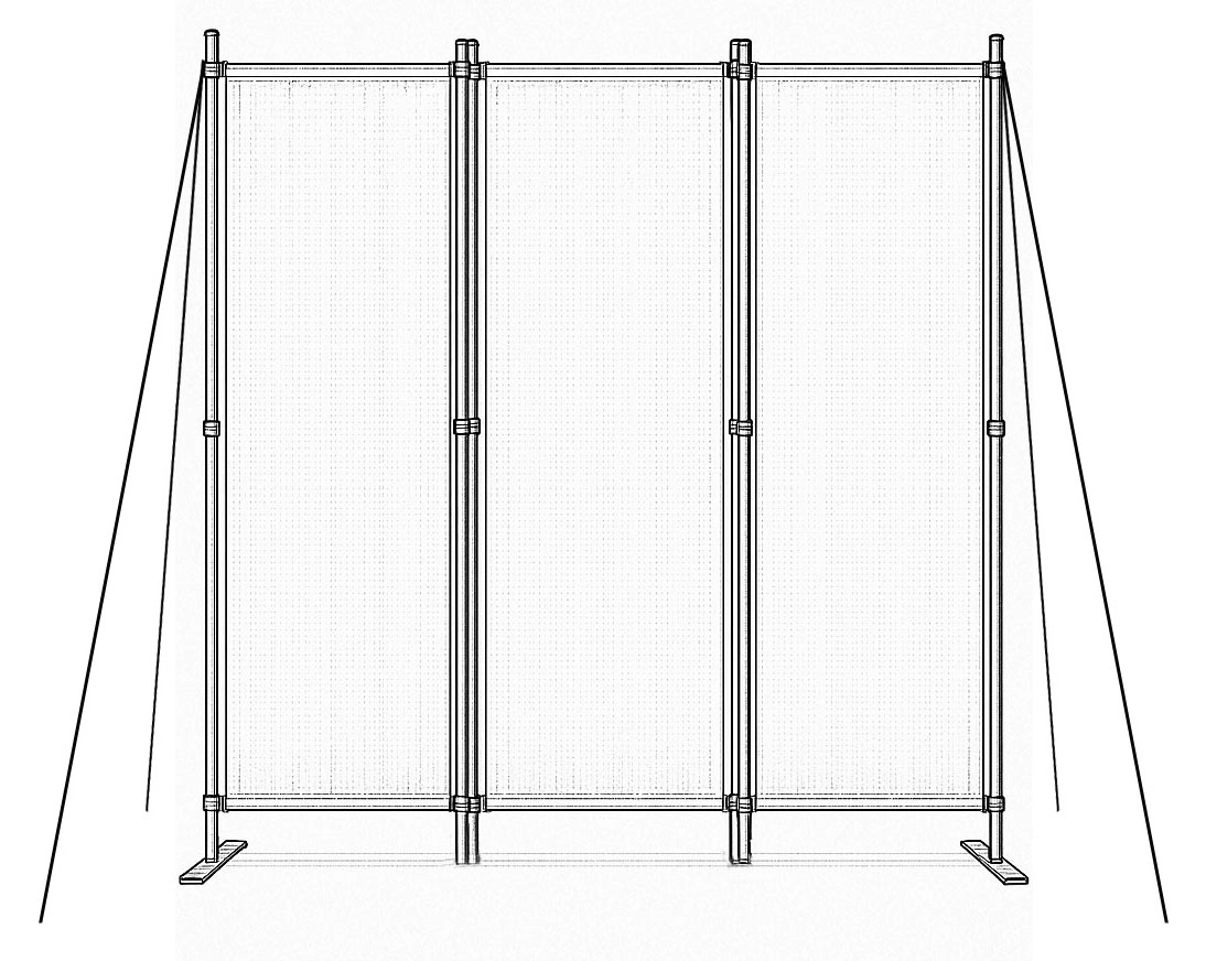 Stingrie paneļu savienojumi nodrošina vienkāršu salocīšanu un izklāšanu starpsienai. Stabilā metāla pamatne ir aprīkota ar praktiskiem montāžas caurumiem papildu nostiprināšanai pie zemes. Pateicoties plašajam balstam, svara sadalījums ir vienmērīgs un novērš apgāšanos, pat uz nelīdzenas virsmas. Komplektā esošie montāžas piederumi palielina stabilitāti un lietotāju drošību, nodrošinot, ka starpsiena paliek stabila arī vējainos apstākļos.