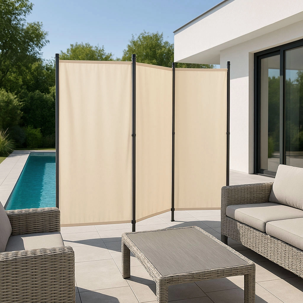 Saliekamā dārza starpsiena MultiGarden ir universāls risinājums ārtelpu aizsardzībai un dekorēšanai. Tā lieliski der dārzā, uz terases vai balkona, kur nodrošina privātumu un aizsardzību pret vēju, vienlaikus kalpojot kā telpas sadalītājs. Izmantojot izturīgu 160 g/m² poliestru, starpsiena ir izturīga pret UV starojumu un lietu. Ar vieglu un salokāmu dizainu to ir viegli pārvietot un pielāgot pēc vajadzības. Elegance bēšā krāsā piešķir stilu un uzlabo estētisko iespaidu.