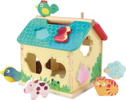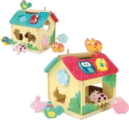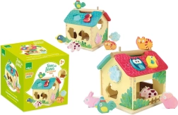 Šis krāsainais ieliktnīšu namiņš lieliski attīsta būtiskas prasmes: bērni trenē acu–roku koordināciju, loģisko domāšanu un pacietību. Komplektā ietilpst 1 namiņš un 10 koka dzīvnieciņi — lieliska kombinācija jēgpilnai un priekpilnai spēlei.