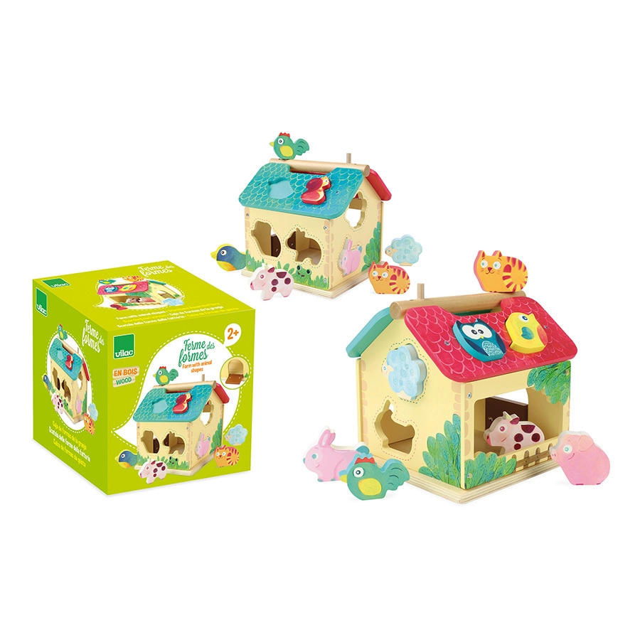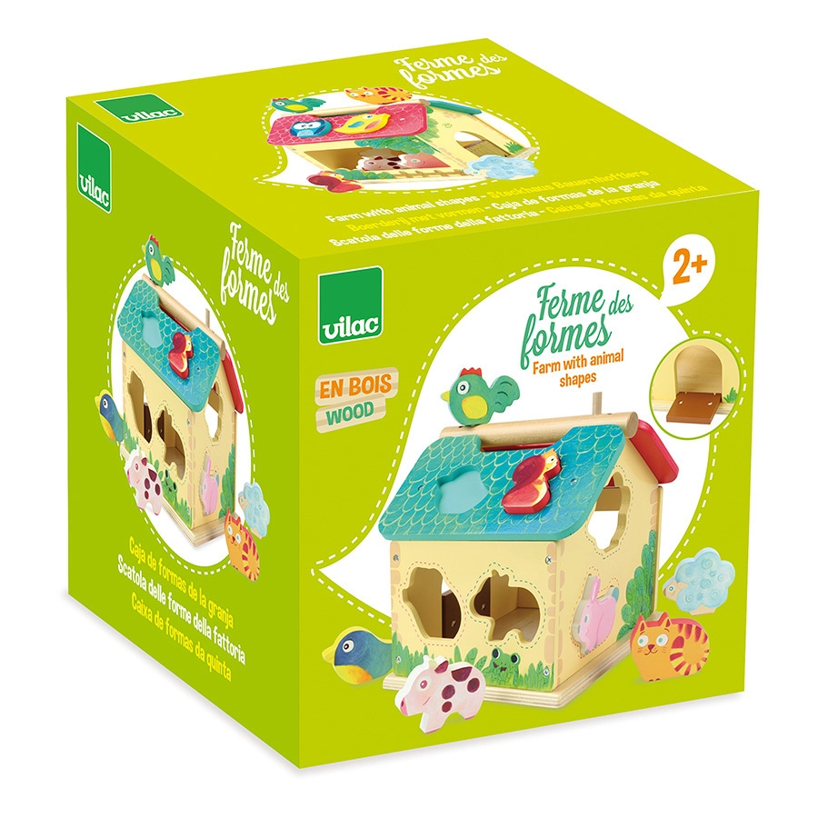 VILAC koka ferma piedāvā aizraujošu dzīvnieciņu ielikšanu atbilstošās formās sienās un jumtā. Pateicoties praktiskajam rokturim, rotaļlietu ir viegli pārnēsāt, un tā ir ideāli piemērota spēlēm mājās vai ceļā. Izturīgais izpildījums un gludās malas nodrošina drošību un ilgu kalpošanas laiku.