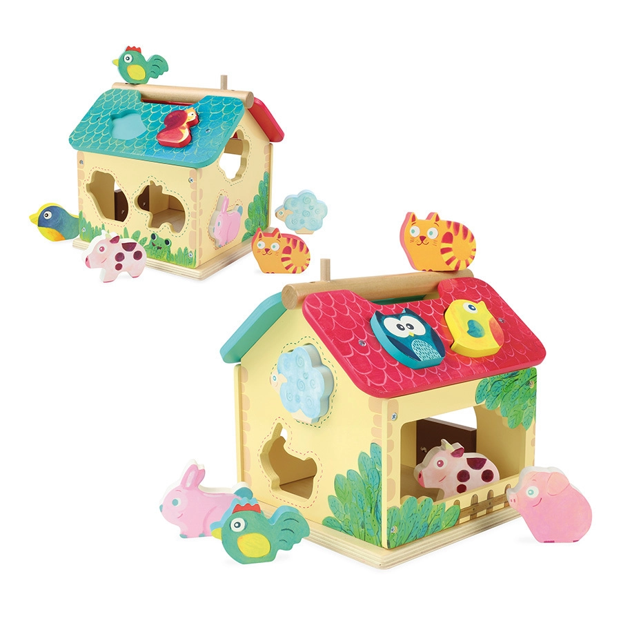 - 1 namiņš un 10 koka dzīvnieciņi (kopā 11 detaļas)