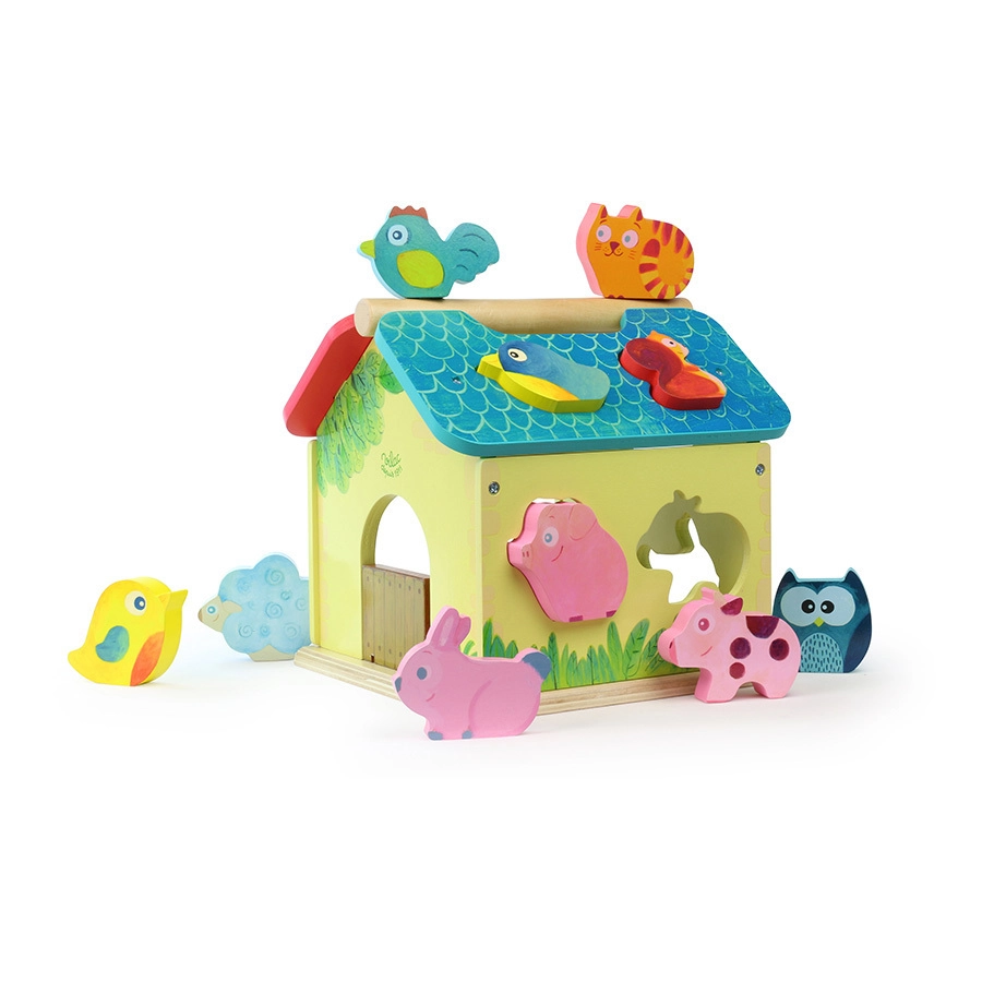 Desmit mīlīgi koka dzīvnieciņi un precīzi izgriezumi palīdz apgūt formu un krāsu atšķiršanu, paplašina vārdu krājumu un māca bērniem pamatprincipus šķirošanā.