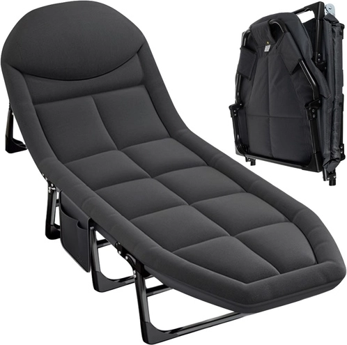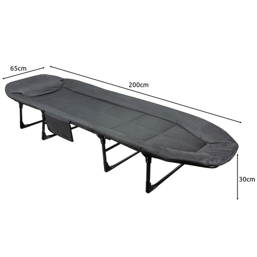 Pēc salocīšanas gulta ir kompakta un viegli pārvadājama, kas atvieglo tās pārnēsāšanu un uzglabāšanu. Praktiska sānu kabata nodrošina, ka personīgās lietas, piemēram, telefons vai grāmata, vienmēr ir pa rokai.