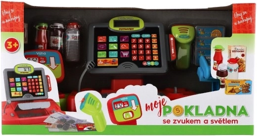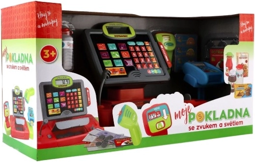 Liels bērnu kases aparāts pārvērtīs jebkuru stūrīti par mazu veikalu. Tas piedāvā gaismas un skaņas efektus, darbojošos kalkulatoru, karšu lasītāju un svarus augļiem un dārzeņiem. Komplektā ir banknošu, monētu un pārtikas maketi. Barošana ar 2× AA baterijām (nav iekļautas). Piemērots no 3 gadu vecuma.
