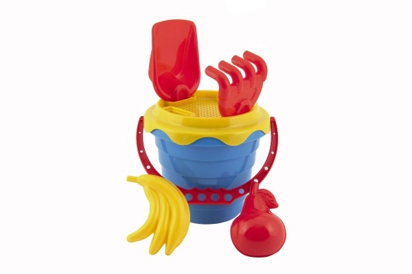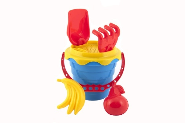 Tajā ietilpst 12 cm izmēra ērts spainītis, ko papildina sietiņš lielāku smilšu daļiņu atdalīšanai. Komplektā ir arī lāpstiņa, grābeklītis un divas veidošanas formiņas, kas ļaus jūsu bērnam veidot oriģinālas smilšu būves.