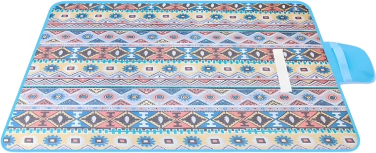 Pēc lietošanas pleds vienkārši salokāms kompaktā somā ar izmēru 31 × 23 × 5 cm, ar lipekļa aizdari un ērtu rokturi pārnēsāšanai. Pieejami divi pievilcīgi raksti: zaļas lapas vai zilas ģeometriskas figūras – lieliski saskan ar vasaras noskaņu gan pludmalē, gan parkā.