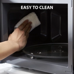 Atklājiet mikroviļņu krāsni ar modernu dizainu, kas ir ne tikai estētiski pievilcīga, bet arī ļoti funkcionāla. Ar ietilpību, kas piemērota 255 mm rotējošajam šķīvim, tā ir ideāla jebkura lieluma mājsaimniecībām.