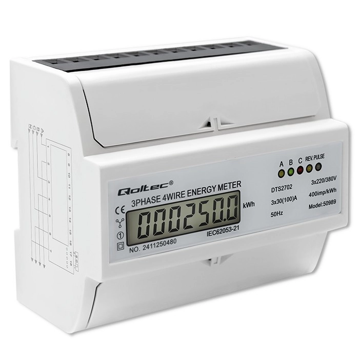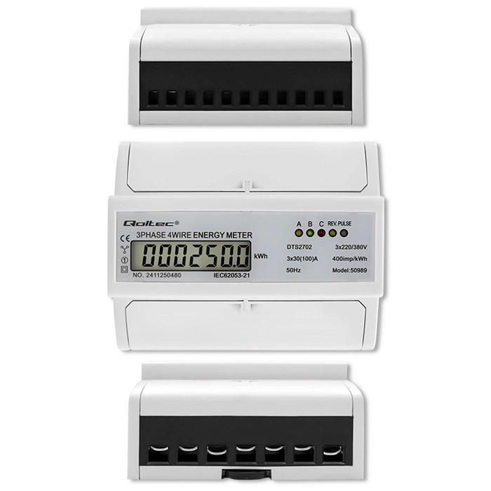 Trīsfāzu divvirzienu elektroniskais elektroenerģijas skaitītājs no Qoltec ir izstrādāts efektīvai enerģijas patēriņa kontrolei ar vienkāršu lietošanu. Tā kompaktie izmēri un vieglā uzstādīšana padara to par ideālu izvēli gan mājsaimniecībām, gan rūpnieciskai lietošanai. LCD displejs sniedz precīzus datus par patēriņu, kas atvieglo efektīvu enerģijas izmaksu pārvaldību.