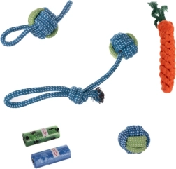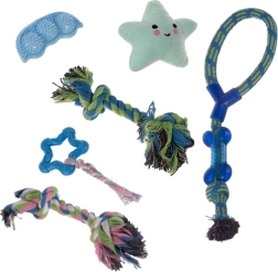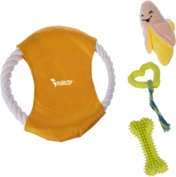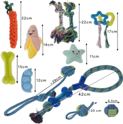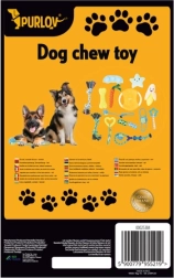 Suņu rotaļlietu komplekts PURLOV 16v1 ir piemērots visiem suņiem un kucēniem, nodrošinot ne tikai izklaidi, bet arī rūpes par zobu veselību.