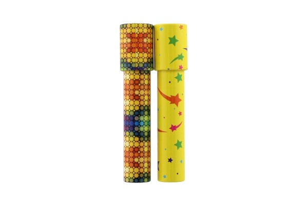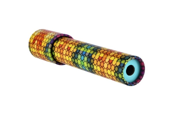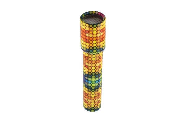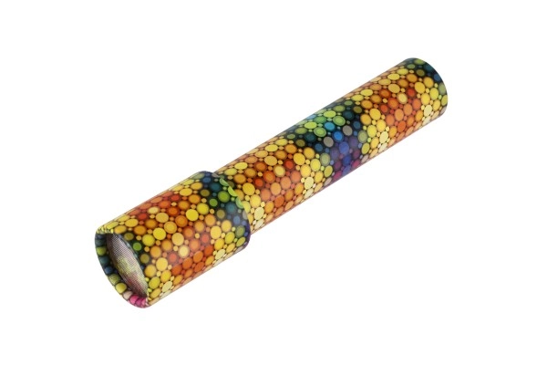 Atklājiet gaismas burvību ar šo 20 cm garo plastmasas kaleidoskopu. Skatoties pret gaismu, ar spoguļu sistēmu un krāsainām daļiņām tas veido apburošus ģeometriskus rakstus. Lieliska izvēle bērniem no 3 gadu vecuma, kas veicina iztēli, sensoro uztveri un radošas rotaļas. Piegādājas maisiņā, dažādos krāsainos, jauktos motīvos.