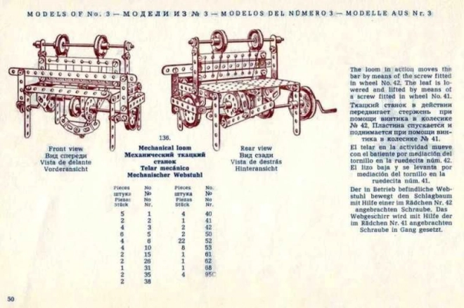 Komplektā ietilpst liela, laikmetīgi stilizēta 94 lappušu instrukciju grāmatiņa ar attēlotām darbībām. Instrukcijas papildinātas ar oriģinālajiem tekstiem angļu, vācu, spāņu un krievu valodā un ir paredzētas MERKUR classic C03, C04 un C05 konstruktoriem.