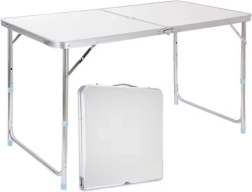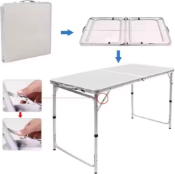Saliekamais kempinga galds ātri izklājas, bet salocīts veido kompaktu koferi ar ērtu rokturi, kas nodrošina vienkāršu glabāšanu un pārvadāšanu. Lielā virsma ar izmēriem 120 x 60 cm piedāvā pietiekami daudz vietas ēdienam, dzērieniem vai spēlēm. Regulējamas kājas ļauj pielāgot augstumu dažādiem apstākļiem un lietotāju vēlmēm.