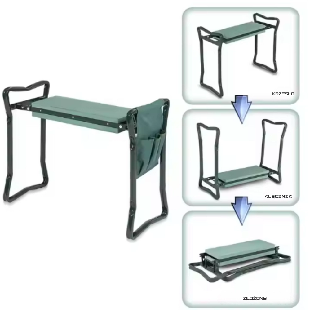 Pateicoties 3 vienā funkcijai, ceļgalkli var izmantot kā stādišanas soliņu, ravēšanas ceļgalkli vai sēdekli atpūtai. Mīkstā EVA putu virsma nodrošina komfortu jūsu ceļgaliem. Saliekamā konstrukcija ļauj to viegli pārvadāt un uzglabāt.