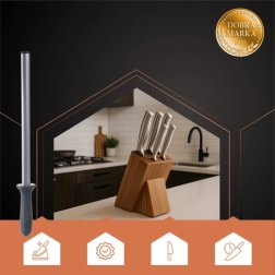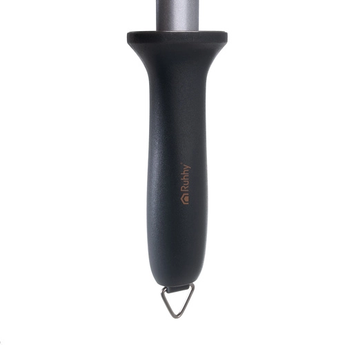 Dimanta asināmais RUHHY ir neatsverams palīgs regulārai nažu asināšanai, kas uzturēs jūsu instrumentus perfektā stāvoklī. Ergonomiskā roktura un tērauda stieņa kombinācija nodrošina ērtu un izturīgu lietošanu, padarot to ideālu gan profesionālai, gan mājas virtuvei.