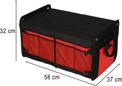 Auto bagāžnieka organizators ir lielisks palīgs ikvienam vadītājam. Izceļas ar ietilpību līdz pat 60 litriem, kas ļauj efektīvi sakārtot lietas. Noņemamās starpsienas ar lipekļiem palīdz pielāgot iekšējo telpu jūsu vajadzībām. Izturīgs materiāls – oksforda poliestera audums – nodrošina ilgu kalpošanas laiku un noturību pret netīrumiem.
