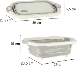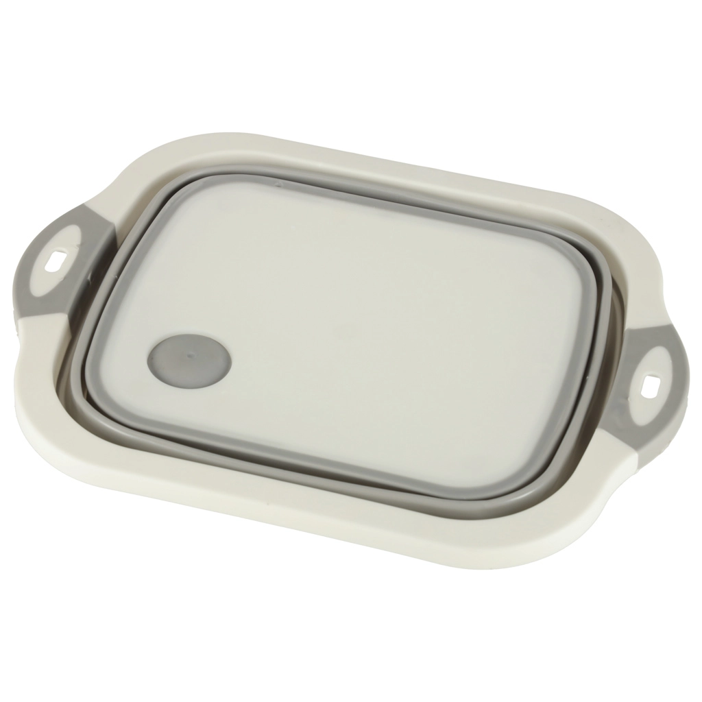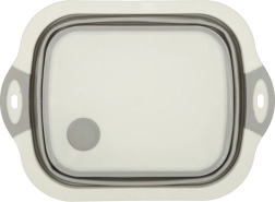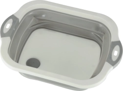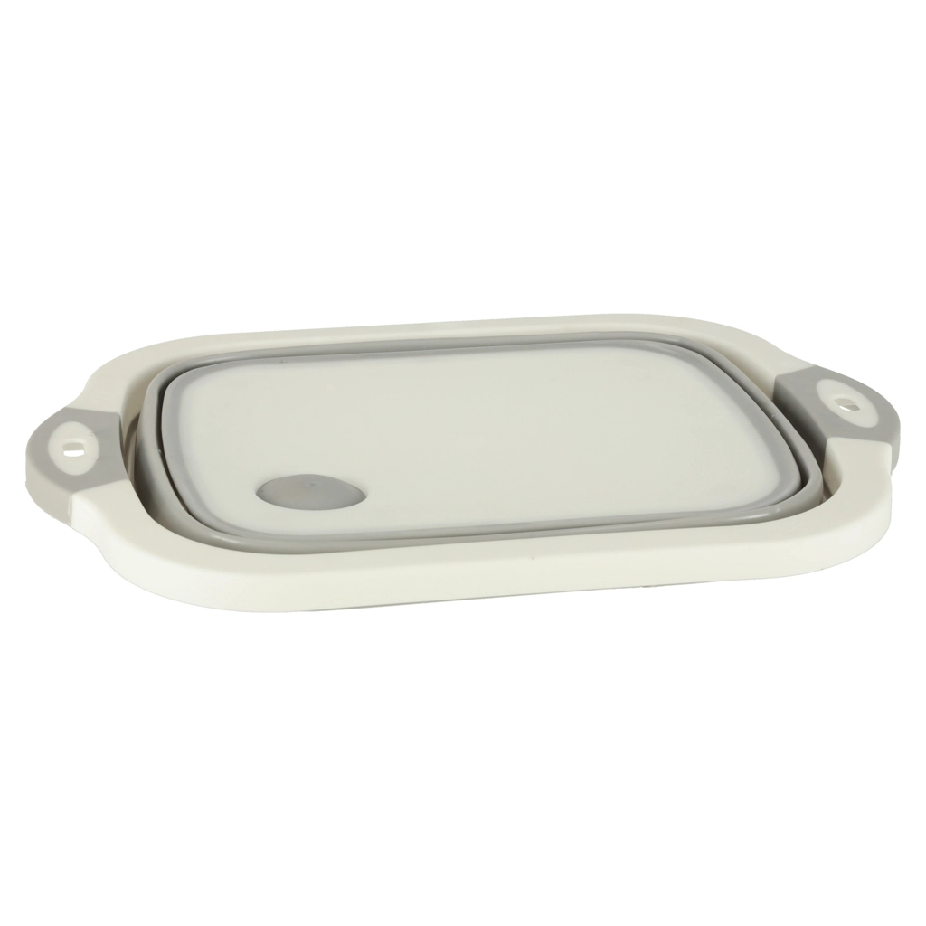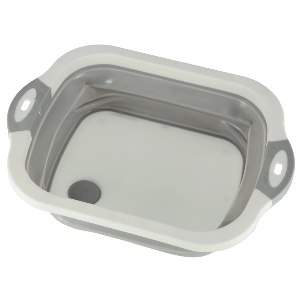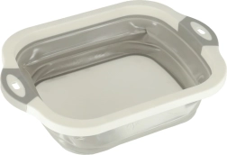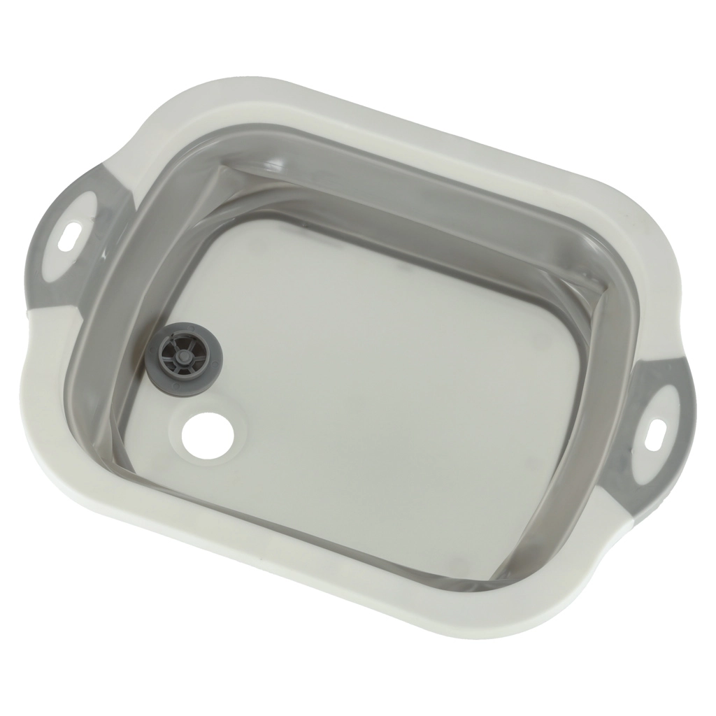 Saliekama silikona bļoda ar noteci, 5,5 l tilpumu, ir ideāls kempinga palīgs, kas ietaupa vietu tavā kemperī. Salocītā veidā tā ir kompakta un ērta glabāšanai mugursomā vai skapī.