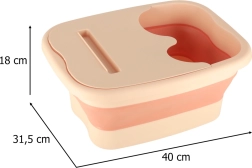 Šis kāju masāžas baseins ir lielisks risinājums tiem, kas meklē ērtu relaksācijas veidu pēc garas dienas. Izgatavots no kvalitatīvas plastmasas elegantos bēšos un laškrāsas toņos, tas piedāvā ne tikai lielisku izskatu, bet arī praktisku funkcionalitāti.