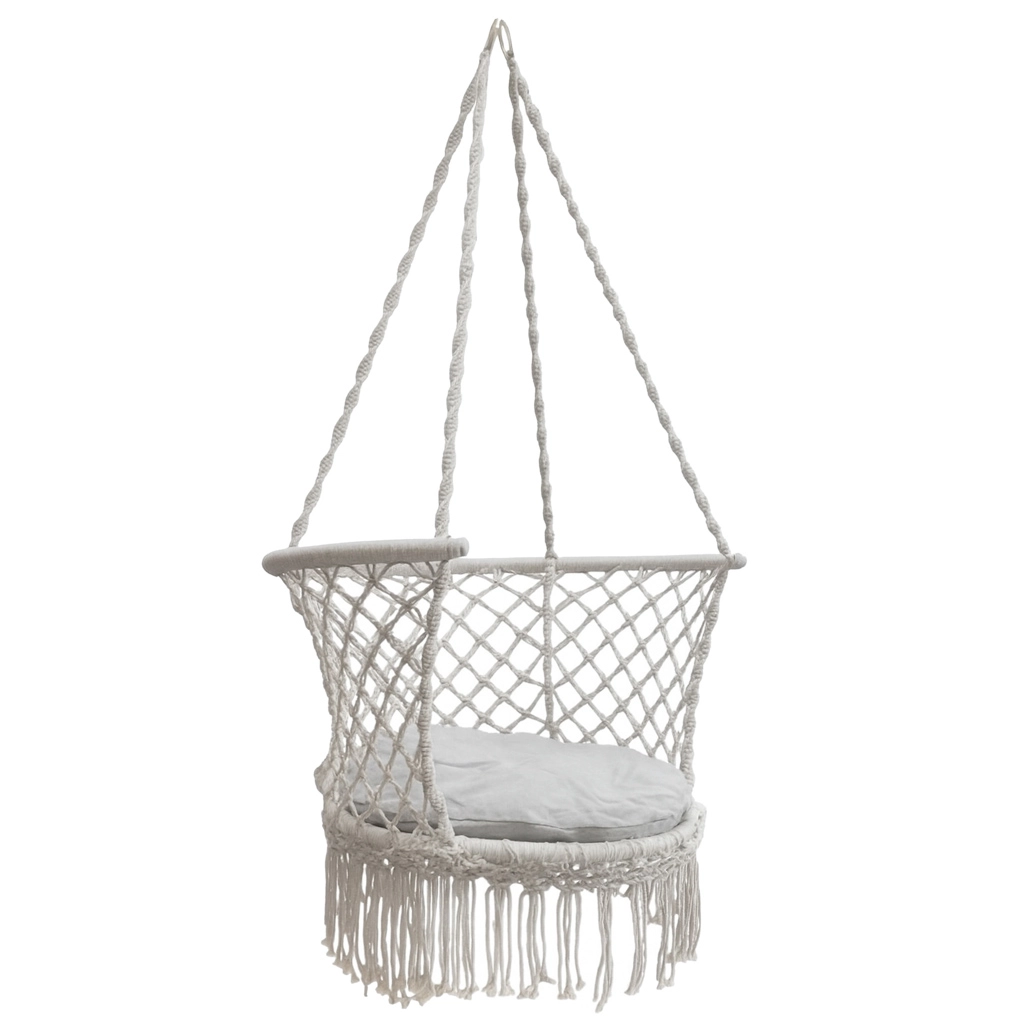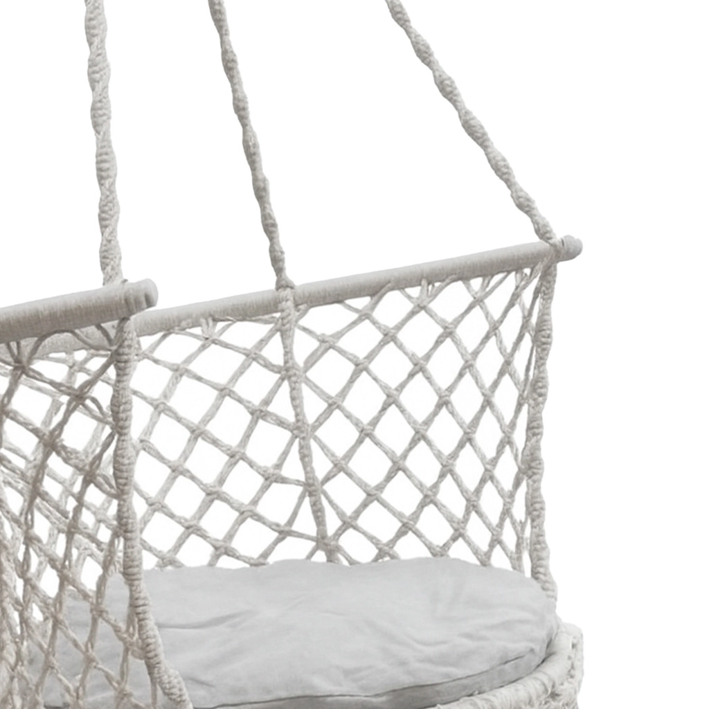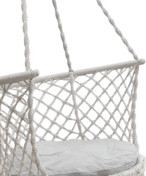 Pelēks piekarams sēdeklis ar ligzdas tipa konstrukciju pārvērtīs jūsu dārza stūrīti par mierpilnu atpūtas vietu. Pateicoties spilvenam, kas iekļauts komplektā, varat ērti atbalstīt muguru pret metāla apli. Šūpoles ir stabilas un ļauj sēdēt gan taisni, gan ērti turku sēdus pozā.