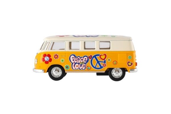 Ienirstiet 60. gadu pasaulē ar šo rūpīgi izstrādāto Volkswagen autobusa modeli, kas ir ideāls gan mazajiem kolekcionāriem, gan aizrautīgiem spēlētājiem. Modelis izgatavots no kvalitatīva metāla un plastmasas, piedāvājot stingru konstrukciju un vēsturisku šarmu. Rotaļlieta piemērota bērniem no 3 gadu vecuma.