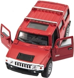 Stilīgs apvidus auto Hummer H2 modelis no zīmola Kinsmart iepriecinās gan bērnus, gan kolekcionārus. Apvieno metāla un plastmasas detaļas, ir atvilkšanas piedziņa, bieži arī atveramas durvis un 12 cm garums. Pieejams 4 krāsu variantos un piemērots no 3 gadu vecuma.