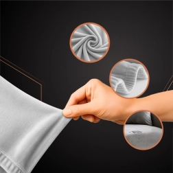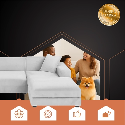 Gaišs elastīgs pārvalks no RUHHY ir ideāla izvēle jūsu dīvāna aizsardzībai un atjaunošanai. Tas pielāgojas mēbeles formai, neslīd un piešķir interjeram mājīgu un elegantu izskatu.