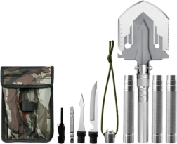 Komplektācijā ietilpst bagātīgs aprīkojums: daudzfunkcionāls nazis, ugunskristis, logu lauznis, signāla svilpe un divpusējs bits (plakanais un krusteniskais), kas ievietots rokturī. Viss ir ērti sakārtots izturīgā divdaļīgā korduras somiņā, kas nodrošina ērtu pārnēsāšanu.