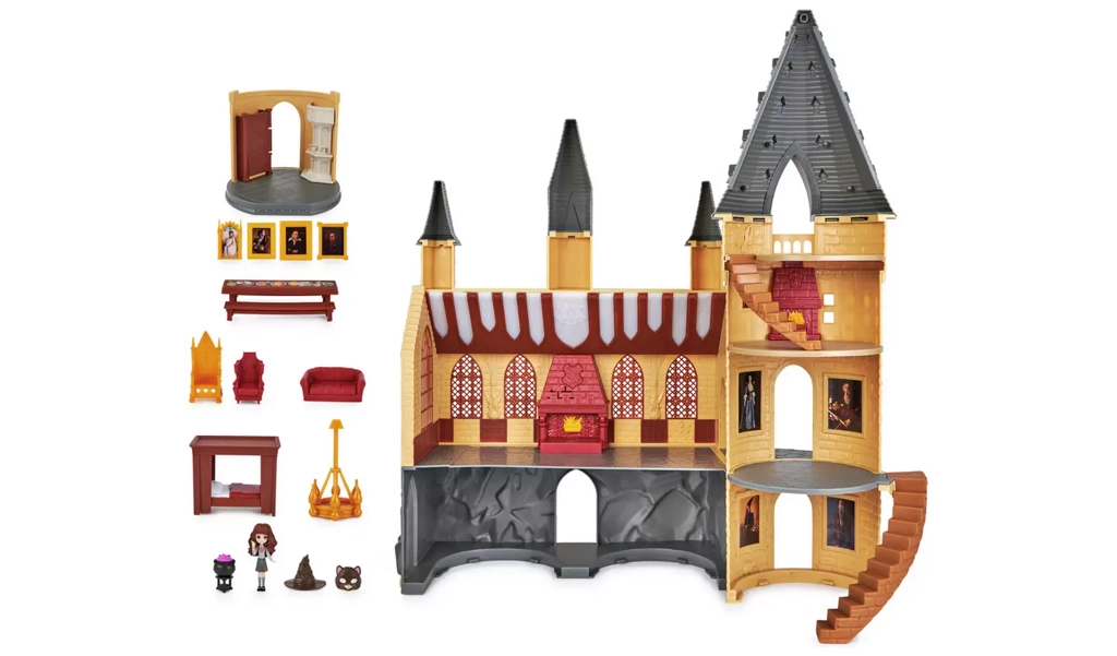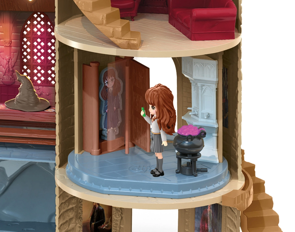 Pils izceļas ar detalizētiem arhitektūras elementiem un košām krāsām, kas akcentē Harija Potera pasaules burvību.