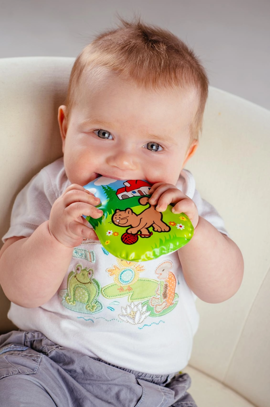 Spilventiņš izgatavots no drošiem materiāliem bez ftalātiem un ir sertificēts lietošanai no dzimšanas. Pieejami vairāki mīlīgi dzīvnieciņu motīvi, kas veicina vizuālo stimulāciju un pirmo iepazīšanos.