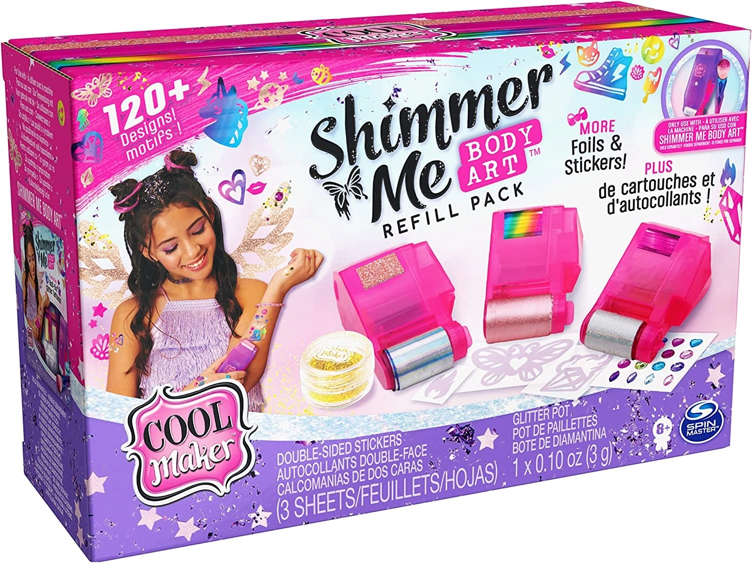 Iedzīviniet savas radošās idejas ar Cool Maker Shimmer Me tetovējumu uzpildes komplektu. Šis sets ietver plašu rakstu un mirdzošu dekorāciju klāstu, kas ļauj izcelt jūsu personību.