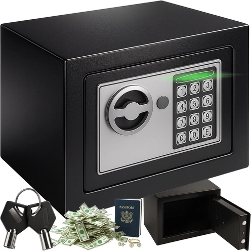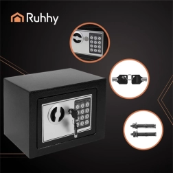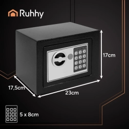 Kompaktais RUHHY seifs sargā jūsu vērtslietas, pateicoties elektroniskajai koda slēdzenei, automātiskai bloķēšanai pēc 3 nepareiziem mēģinājumiem un avārijas atslēgai. Ideāli piemērots mājām, birojam un viesnīcai, izgatavots no izturīga tērauda, ar gaismas un skaņas signalizāciju un iespēju piestiprināt pie sienas.