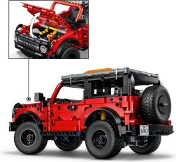 Atklājiet bērniem no 9 gadiem paredzēto LEGO Technic SUV FORD BRONCO ar reālistiskām funkcijām – atveramām durvīm, stūrēšanu ar aizmugurējo riteni, neatkarīgu piekari, V6 motoru un jumta bagāžnieku ar bezceļu sliedēm. Lieliska dāvana auto un bezceļu piedzīvojumu cienītājiem.