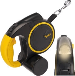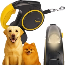 Praktiska automātiska pavada ar 5 m garumu suņiem, kuru svars ir 10–25 kg. Piedāvā izturīgu un drošu lentu, tūlītēju kontroli ar STOP bremzi, ergonomisku rokturi un integrētu LED lukturīti drošām pastaigām krēslā. Komplektā ir arī maisaviņu turētājs un kvalitatīva rotējoša karabīne pret savērpšanos.
