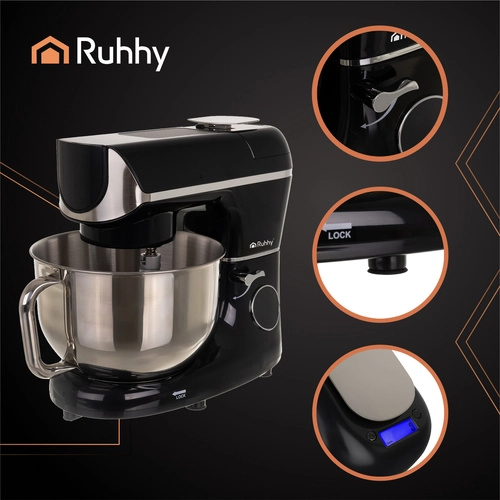 Atklājiet gudro RUHHY virtuves robotu, kas apvieno maisīšanu, mīcīšanu, putošanu, uzsildīšanu un svēršanu vienā ierīcē. Pateicoties uzsildāmai bļodai (25–45 °C), mīkla rūgst ātrāk un vienmērīgāk, bet integrētais svars, taimeris un 11 ātrumi nodrošina precīzus rezultātus bez minējumiem. Liels digitālais displejs, klusa darbība (76 dB) un iespēja mazgāt piederumus trauku mazgājamajā mašīnā padara šo robotu par uzticamu palīgu ikdienas cepšanai un gatavošanai.
