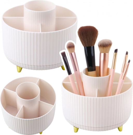 Sakārtojiet savu tualetes galdiņu pārskatāmi un ar eleganci. Rotējošais organizators ar 14 cm diametru sniedz ātru piekļuvi visām kosmētikas nepieciešamībām – pietiek ar vieglu pagriezienu. Atvērtā konstrukcija neierobežo augstumu, tāpēc ērti ietilpina arī garas otiņas vai acu un lūpu zīmuļus.