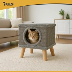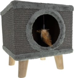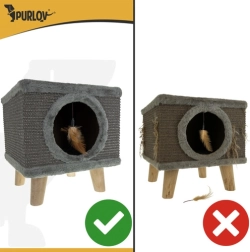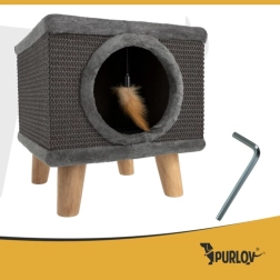 Meklējat kompaktu un modernu risinājumu savam kaķim? Kaķu mājiņa PURLOV piedāvā mājīgu patvērumu ar mīkstu iekšpusi un vienlaikus izturīgu skrāpēkli no dabīga sizala sānos. Paaugstinātais dizains uz stingrām koka kājām garantē stabilitāti pat ļoti aktīvās spēlēs, bet neslīdošie uzgaļi aizsargā grīdu.