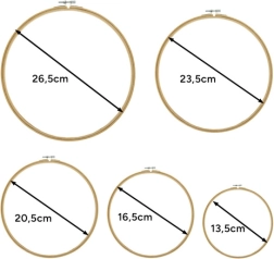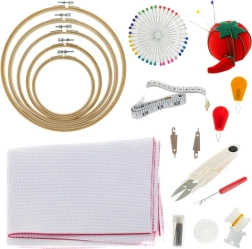 Komplekts ir ideāla dāvana un lieliski noderēs mājas darbnīcai. Praktiskā uzglabāšanas soma palīdzēs visu glīti sakārtot, bet dažādu izmēru bambusa tambori atvieglos darbu ar gan mazākiem, gan lielākiem motīviem.