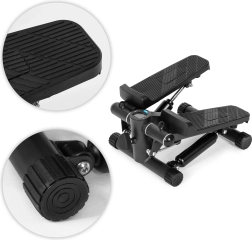 Kompakts steperis ar pretestības ekspanderiem mājas treniņiem ļauj efektīvi stiprināt ķermeņa apakšējo un augšējo daļu, uzlabot kondīciju un dedzināt kalorijas. Izturīga konstrukcija no tērauda, ABS un TPE, pretbuksēšanas pedāļi, regulējama intensitāte un 5 funkciju LCD displejs laika, soļu un kaloriju uzraudzībai. Komplektā iekļauta aizsargpaklājiņš un stabilas kājiņas drošiem treniņiem uz jebkuras virsmas.