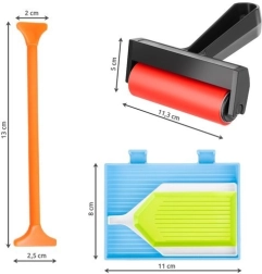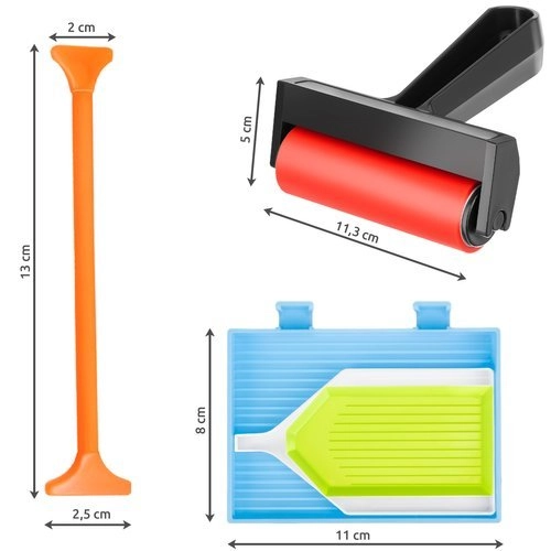 Iepakojumā atradīsiet 4 aplikatorus (“pildspalvas”), 3 rievotus trauciņus dimantu šķirošanai un uzņemšanai, pinceti, līmi, pārnēsājamu somu un rullīti. Komplekts ir ideāli piemērots gan iesācējiem, gan pieredzējušiem lietotājiem un lieliski der kopīgai darbošanai ar bērniem un draugiem.