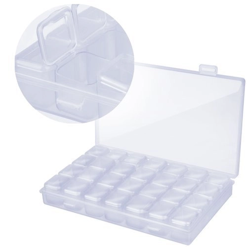 Caurspīdīgs organizētājs ar nodalījumiem un etiķetēm uzturēs jūsu dimantus perfekti sašķirotus. Viegli atradīsiet pareizo krāsu, un darbs noritēs raitāk.
