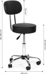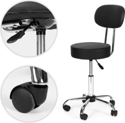 Pieczaru pamatne ar ritenīšiem garantē stabilitāti un klusu, vienmērīgu pārvietošanos uz dažādu veidu grīdām bez saskrāpēšanas. PVC āda ir izturīga, viegli kopjama un iztur saskari ar ūdeni, eļļām un dezinfekcijas līdzekļiem. Krēsls ir lieliska izvēle skaistumkopšanas saloniem, frizētavām, masāžas un tetovēšanas studijām.