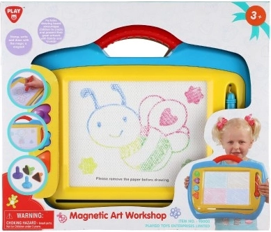 Magnētiskā planšete ir lieliska alternatīva papīram – bērni var zīmēt atkal un atkal, bez flomāsteriem un bez traipiem. Pateicoties ērtajai slīdošajai gumijai/slēdzim, attēlu var viegli nodzēst, un virsma ir gatava jaunam darbam. Izturīgs plastmasas korpuss ar rokturi atvieglo pārnēsāšanu.