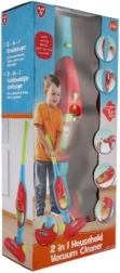 Bērnu putekļsūcējs 2-in-1 ienes ikdienas spēlēs reālistisku izklaidi. Pateicoties diviem režīmiem – kātiņa putekļsūcējam “istabas uzkopšanai” un kompaktajai rokas versijai – bērni viegli apgūst pamata prasmes un gūst daudz priecīgu brīžu. Krāsainās lodītes caurspīdīgajā traukā kustoties virpuļo un rada īsta sūkšanas efektu, ko papildina gaismas un skaņas.