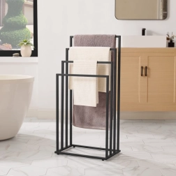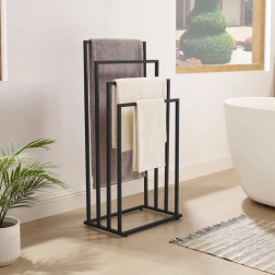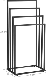 Uzturiet vannasistabu nevainojami sakārtotu ar statīvu, kuram ir četri līmeņi atsevišķai pakāršanai. Atvērtā konstrukcija nodrošina labāku gaisa cirkulāciju un līdz ar to arī ātrāku dvieļu, peldkostīmu vai veļas žūšanu. Minimalistiskais matēti melnais izskats lieliski iederas modernos interjeros.