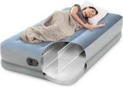 Meklējat ērtu risinājumu viesiem, ceļošanai vai vasarnīcai? Intex uzpūšamais matracis apvieno komfortu, stabilitāti un mobilitāti. Velūra virsma ir patīkama pieskārienam un novērš palaga slīdēšanu, savukārt pastiprinātās Fiber-Tech kameras un Dura-Beam rāmis piešķir gultai stingrību bez nepatīkamas šūpošanās.