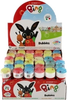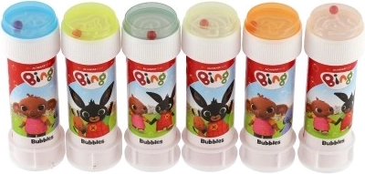 Izklaidējošs bērnu burbulītis ar animācijas varoņu BING motīvu sagādā daudz prieka gan ārā, gan mājās. Satur 60 ml šķīduma, un vāciņā ir mazs galdaulauznis vēl vairākai izklaidei. Piemērots bērniem no 3 gadu vecuma. Krāsas un motīvi tiek piegādāti jauktā veidā atkarībā no noliktavas.