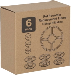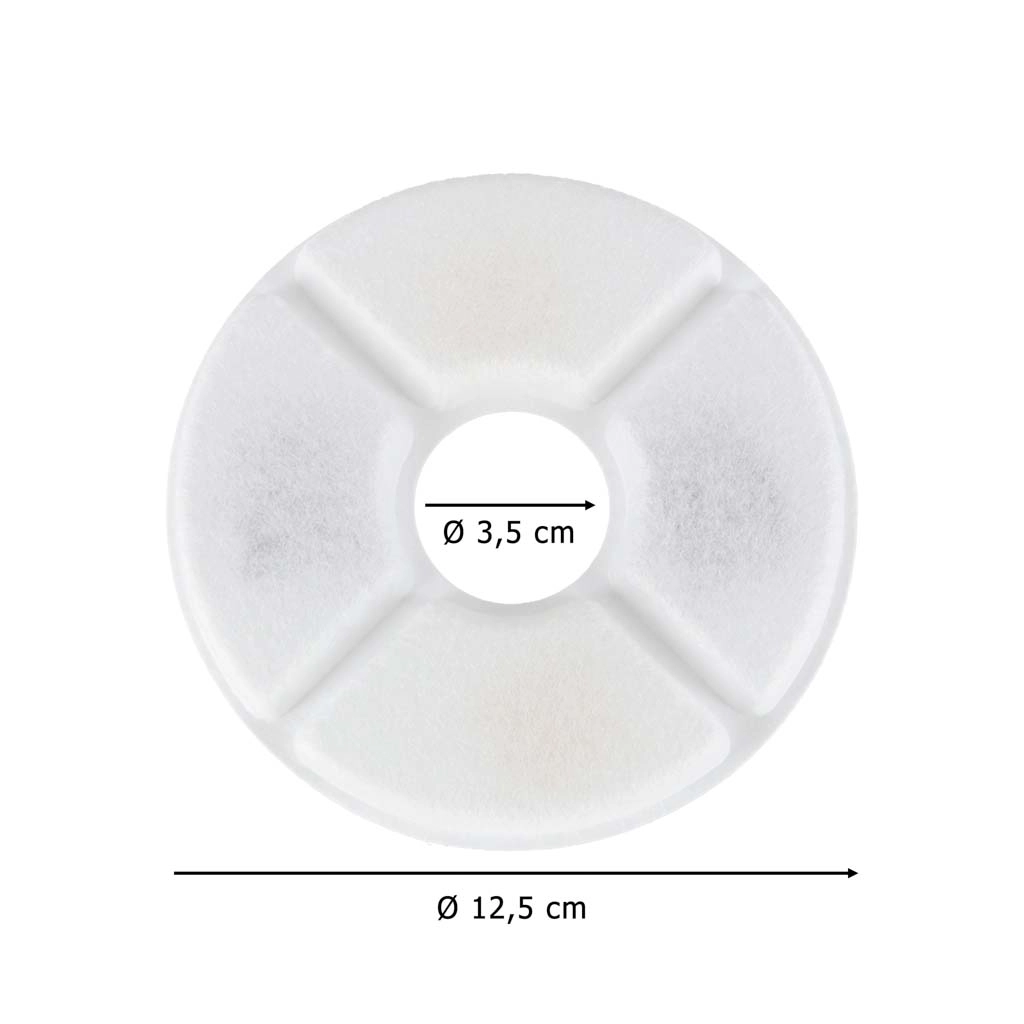 Šajā komplektā ir 6 apaļi filtri, kas paredzēti mājdzīvnieku strūklakām. Pateicoties aktīvās ogles un jonu apmaiņas sveķu kombinācijai, tie uzlabo ūdens garšu un kvalitāti, samazina smakas un aiztur smalkās daļiņas. Regulāra filtra nomaiņa veicina labāku dzeršanas režīmu jūsu mīlulim un palīdz uzturēt strūklaku lieliskā stāvoklī.