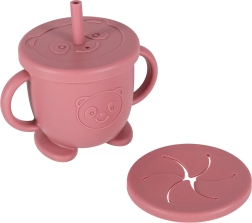 Universāls trauciņš ar diviem vāciņiem un salmiņu kalpo gan kā netekošs uzkodu trauks, gan kā krūzīte ar salmiņu. Ergonomiskas rokturītes ērtai satveršanai.