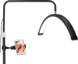 Profesionāla LED lokveida kosmētikas lampa ar 36 W jaudu nodrošina vienmērīgu, bezēnu apgaismojumu skropstu un uzacu stilam, manikīram, grimam un fotografēšanai. Piedāvā plašu krāsu temperatūras diapazonu 3000–5600 K, 10 spilgtuma līmeņus un augstu krāsu atveidi RA>90 precīzai detaļu redzamībai. Stabils metāla statīvs ar regulējamu augstumu un tālruņa turētāju atvieglo darbu un satura veidošanu sociālajiem tīkliem.